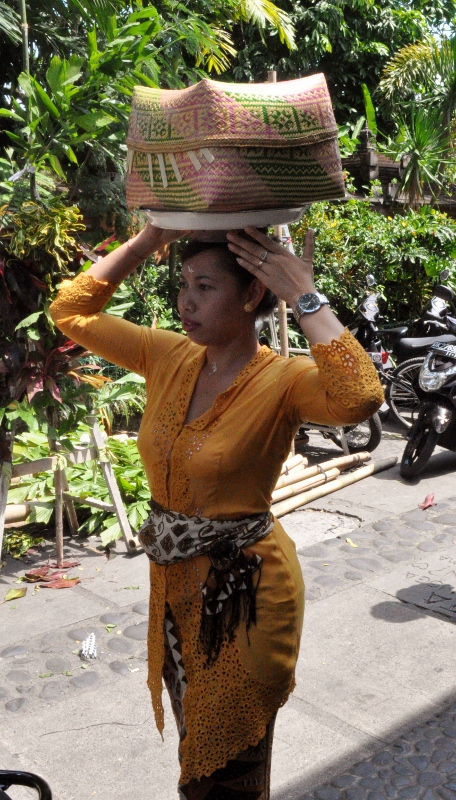 Nyepi is a celebration of the new year, according to the Balinese calendar, and fell in March in both 2014 and 2015. It is a many-day celebration that includes various rituals, parades and colorful costumes. In preparation, villages and streets are cleaned, and offerings are made to gods and ancestors. Rice is used frequently and abundantly -- placed on alters, on faces, in the streets. Women carry tall baskets of food and fresh fruit on their heads; children don their village uniforms and play a central role, too. On the day of Nyepi, all of Bali turns out for solemn prayer at temples and parades to chase away demon spirits -- usually lurking at crossroads. Huge effigies of great monsters and demons are made of paper mache, flax and other materials and decorated lavishly; then, they are displayed on large floats made of bamboo scaffolding and supports, carried at dusk through the streets. This was our favorite part of the whole celebration: like Mardi Gras, Balinese style. A spectacular sight to behold, and a celebration with good cheer and powerful vibes.